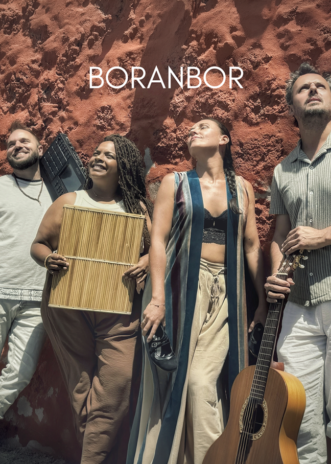 BorAnBor prend racine en Inde, en Afrique, en Espagne, à La Réunion, dans nos cœurs et dans nos corps. Il est issu de la rencontre de quatre artistes qui font dialoguer les traditions, les tissent pour en permettre le métissage. Forts des identités et des racines, artistes et spectateurs plongent dans l’univers de BorAnBor entre danse et musique, entre douceur et tiraillements, sentent s’effacer les frontières et les distances, et écoutent vibrer les zarboutans.